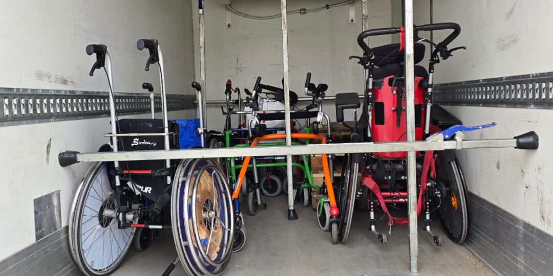 Im Frühjahr wurden an der Albatrosschule Bielefeld, einer Förderschule mit dem Schwerpunkt körperlich-motorische Entwicklung, nicht mehr gebrauchte aber noch funktionsfähige Hilfsmittel aussortiert und Ananse zur Verfügung gestellt. Die Hilfsmittel wurden von uns mit einem Transporter in die Niederlande gebracht, wo sie dann zusammen mit weiteren Hilfsmittelspenden nach Ghana verschifft wurden. In Nkoranza werden sie nun weiter genutzt.